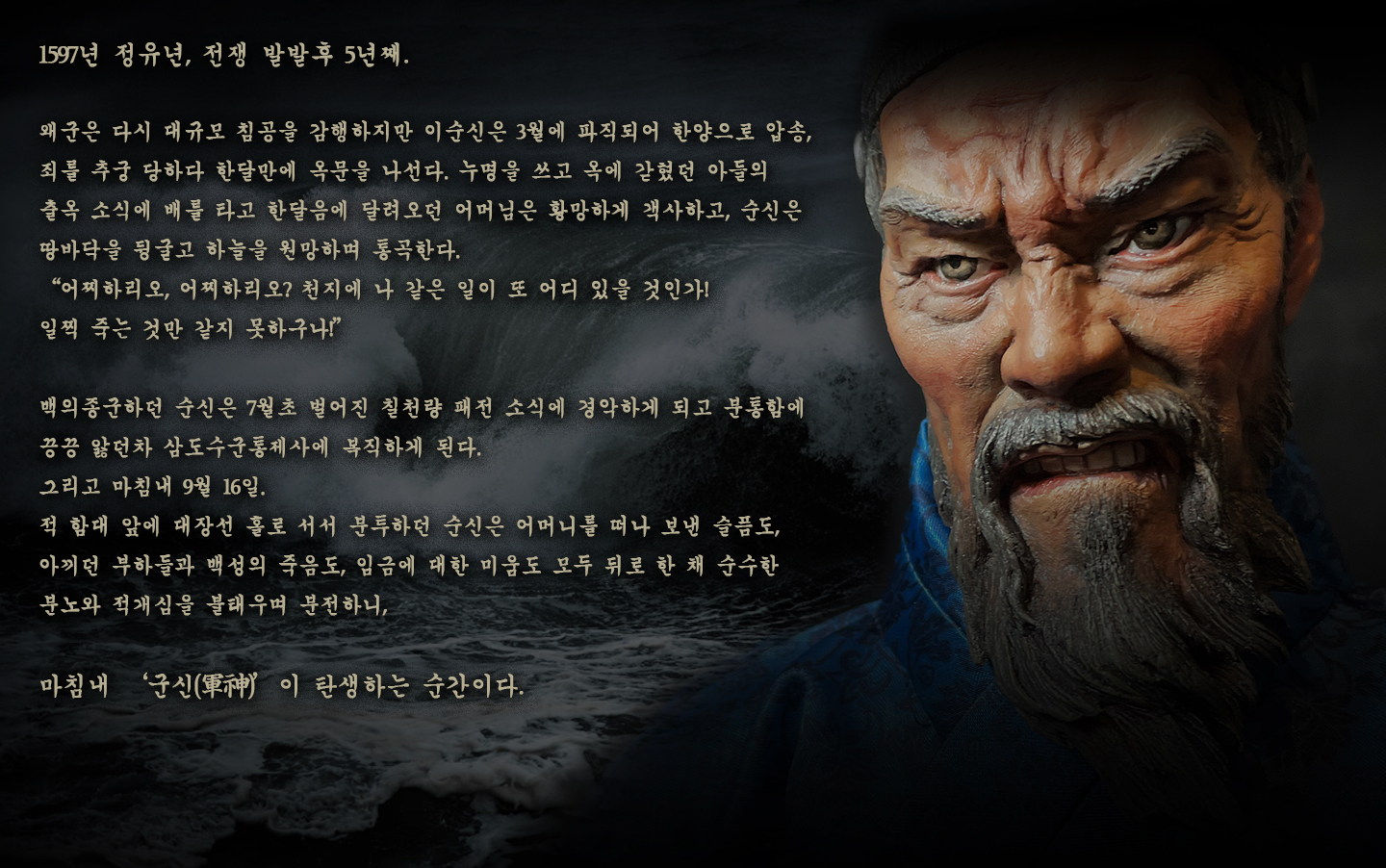 파직과 고문, 백의 종군을 겪고 칠천량 패전 소식에 울분을 삼키던 이순신.