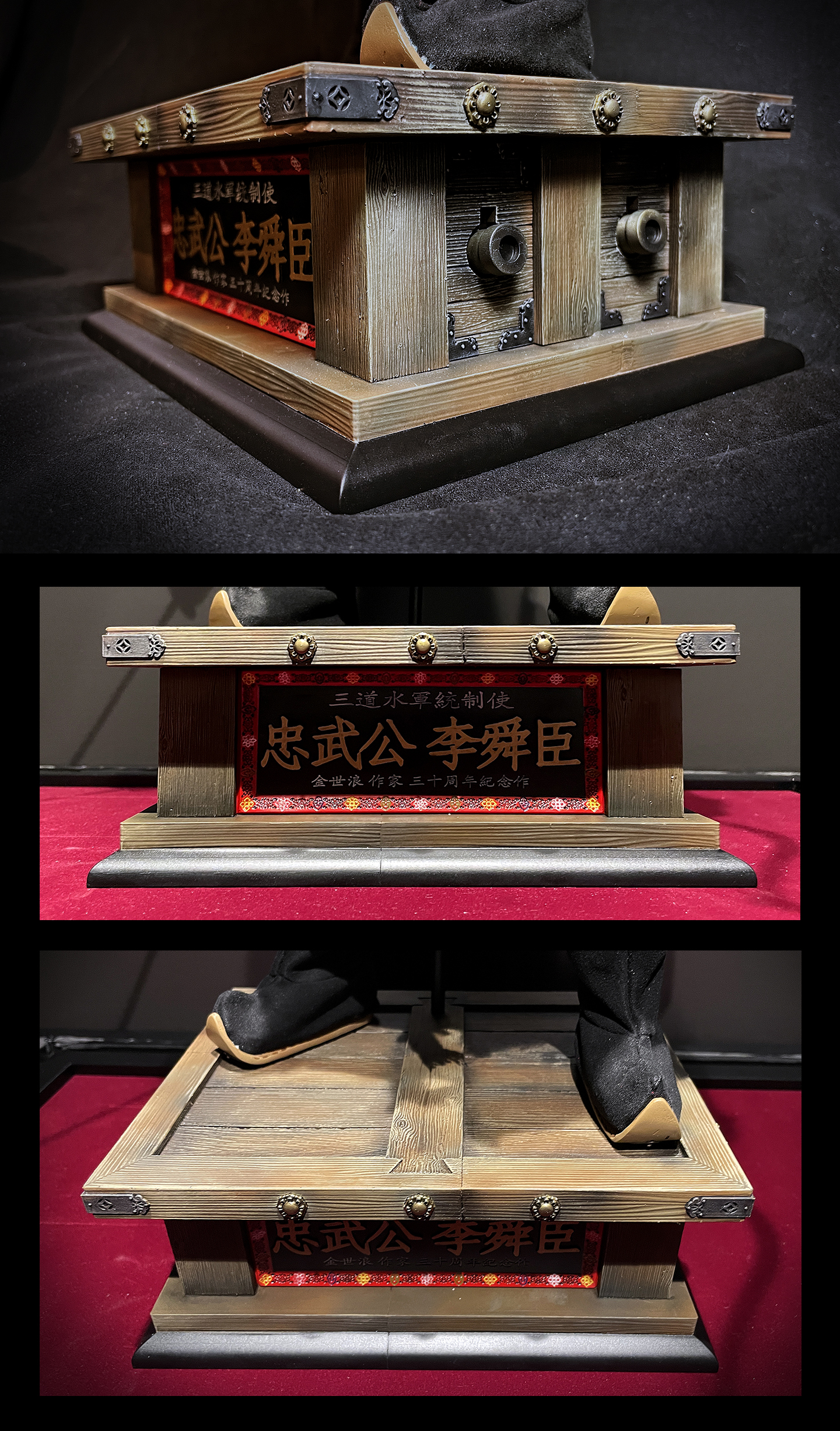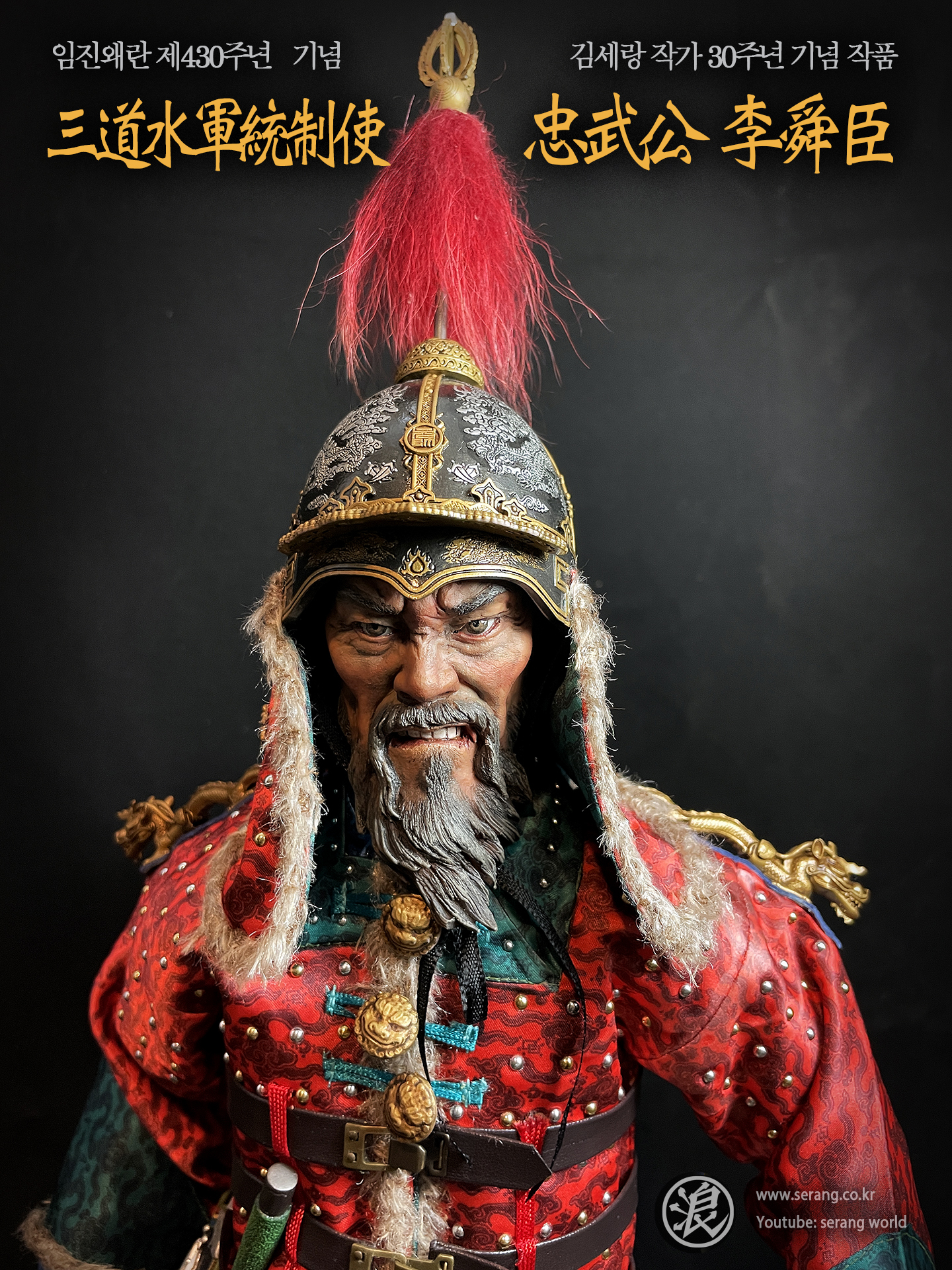 양산품이 아닌 작가작의 가장 큰 미덕인 '작가의 해석과 의도'를 명확히 드러낸 것으로, 이미 작품발표때 밝힌 바와 같이 명량해전 당시 장군이 처한 현실과 육체적 정신적 상태를 조형과 도색에 담아 표현합니다.